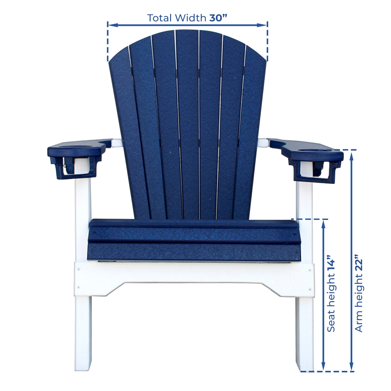 Our folding Adirondack chairs are made from recycled plastic, are ecologically friendly and on the leading edge of sustainable outdoor furniture. It folds easily for easy storage. All hardware is 316 stainless steel and will not rust. This chair is heavy duty and has a 300 lb. weight limit. The front legs are made from 2x4’s for maximum stability. All furniture comes with a 20 year residential warranty. Minimal assembly required.