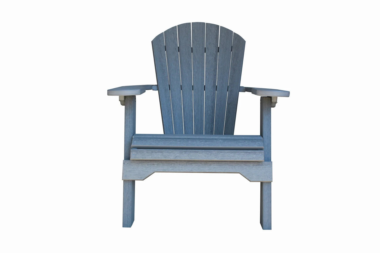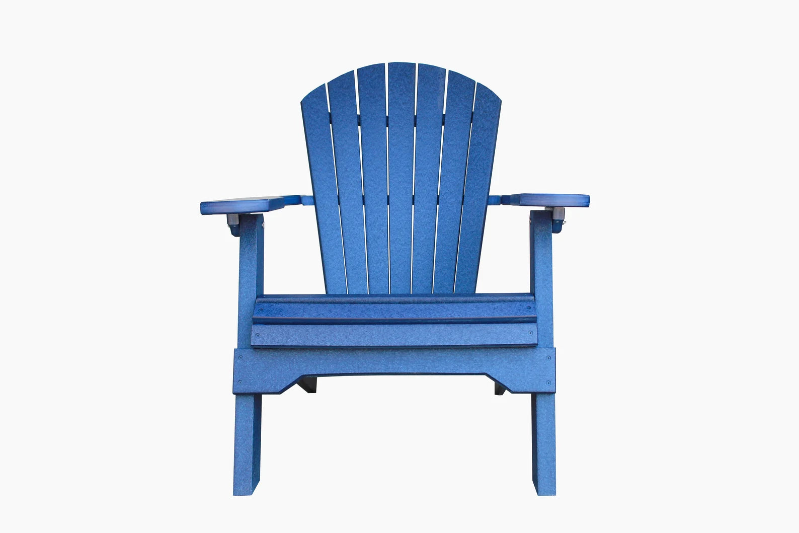 Our folding Adirondack chairs are made from recycled plastic, are ecologically friendly and on the leading edge of sustainable outdoor furniture. It folds easily for easy storage. All hardware is 316 stainless steel and will not rust. This chair is heavy duty and has a 300 lb. weight limit. The front legs are made from 2x4’s for maximum stability. All furniture comes with a 20 year residential warranty. Minimal assembly required.